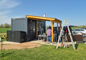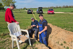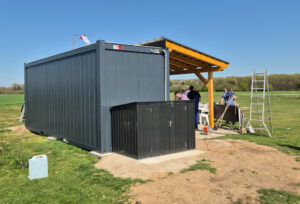 Bei bestem Wetter hatten sich am 11.04.2026 zahlreiche Helfer eingefunden, um bei der Fertigstellung des neuen Containers auf dem Gelände zu helfen. Aufgabe heute war das Erdkabel, das bislang 5 m vor dem Container endete, zu verlängern und schließlich an den Container anzuschließen. Und weil gerade fachkundiges Personal vor Ort war, sollte auch gleich noch ein Sicherungskasten angebracht werden.